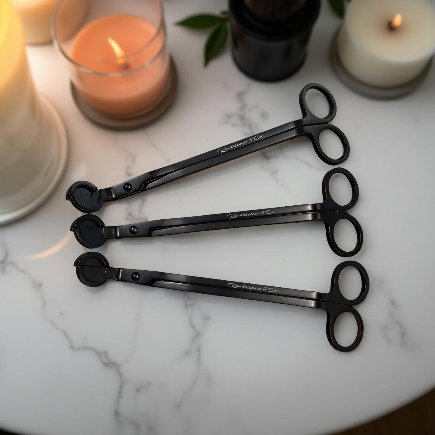 Each trimmer is engraved with the Kandessence & Co logo in elegant cursive, adding a touch of sophistication to your candle accessories. The ergonomic handle ensures a comfortable grip, while the stylish matte finish makes it a perfect match for any décor or gift set.